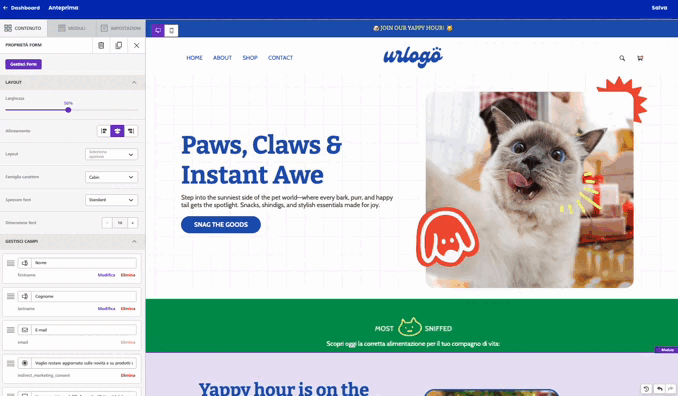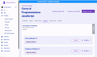 integrare il questionario su pagine create con il page builder o all’interno dell’area riservata dei tuoi studenti.