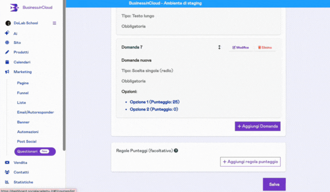 Salva la tua domanda → per ogni nuova domanda dovrai cliccare sul pulsante salva prensente nel box di creazione e modifica.