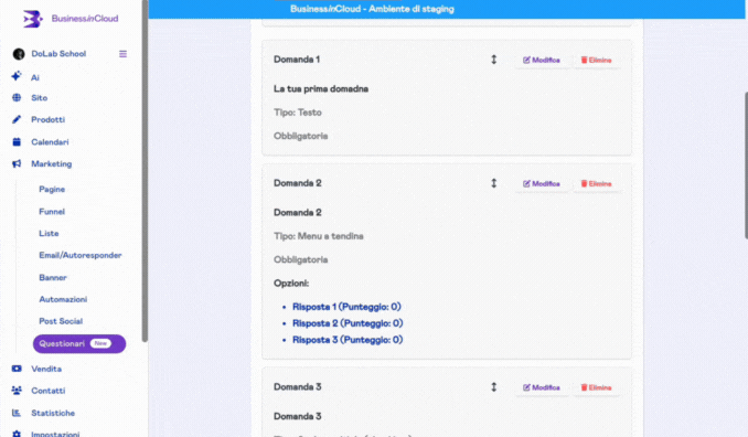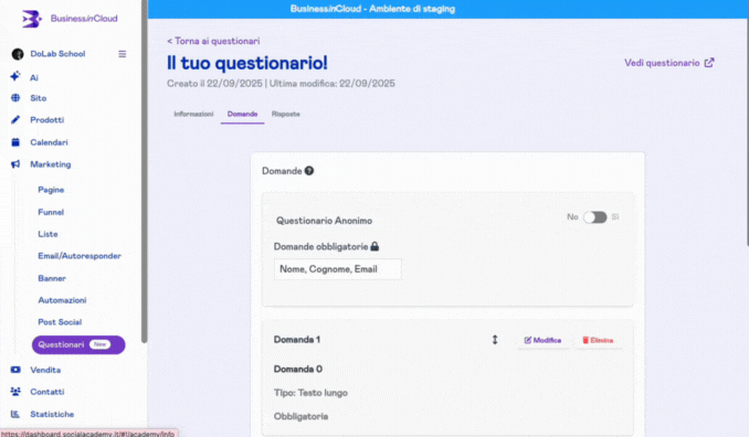 Cliccando su “Modifica” puoi configurare ogni dettaglio della singola domanda: