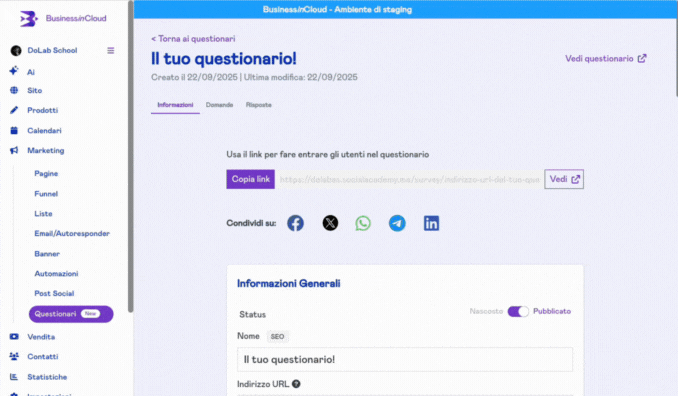 Con queste impostazioni il tuo questionario smette di essere un semplice modulo e diventa un funnel intelligente, capace di guidare ogni utente verso il contenuto o l’offerta più adatta a lui.