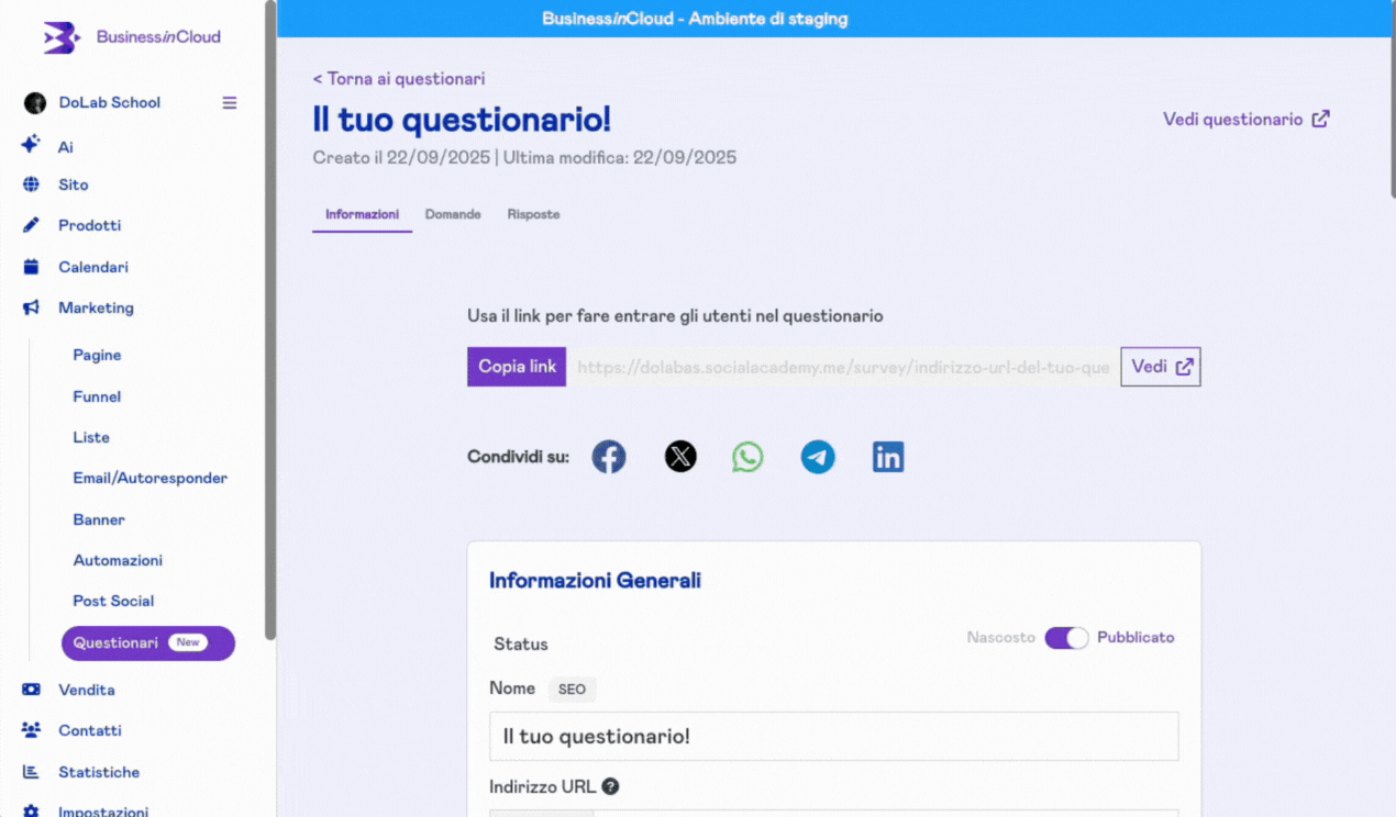 π Nel prossimo tutorial scopriremo come leggere e gestire le risposte dei tuoi questionari, così da trasformare i dati raccolti in decisioni strategiche per far crescere il tuo business.